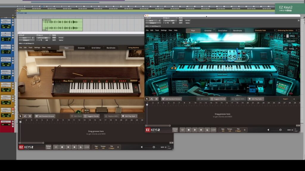 動画チャプター「08:16 EZ Keys2の拡張音源」内の「09:31」付近でサウンドを視聴できます。