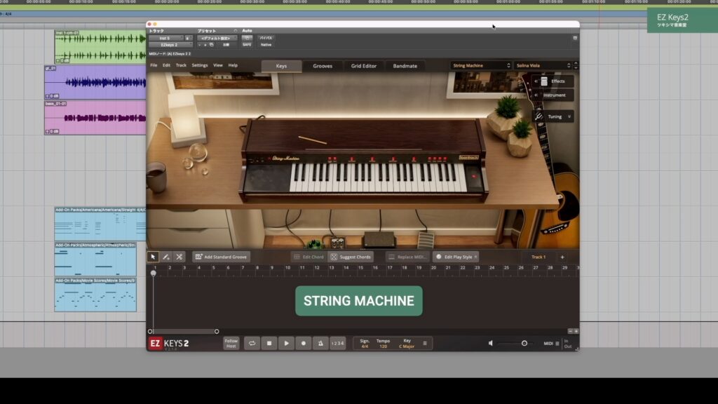「STRING MACHINE」は「Solina String Ensemble」をエミュレートした音源です。