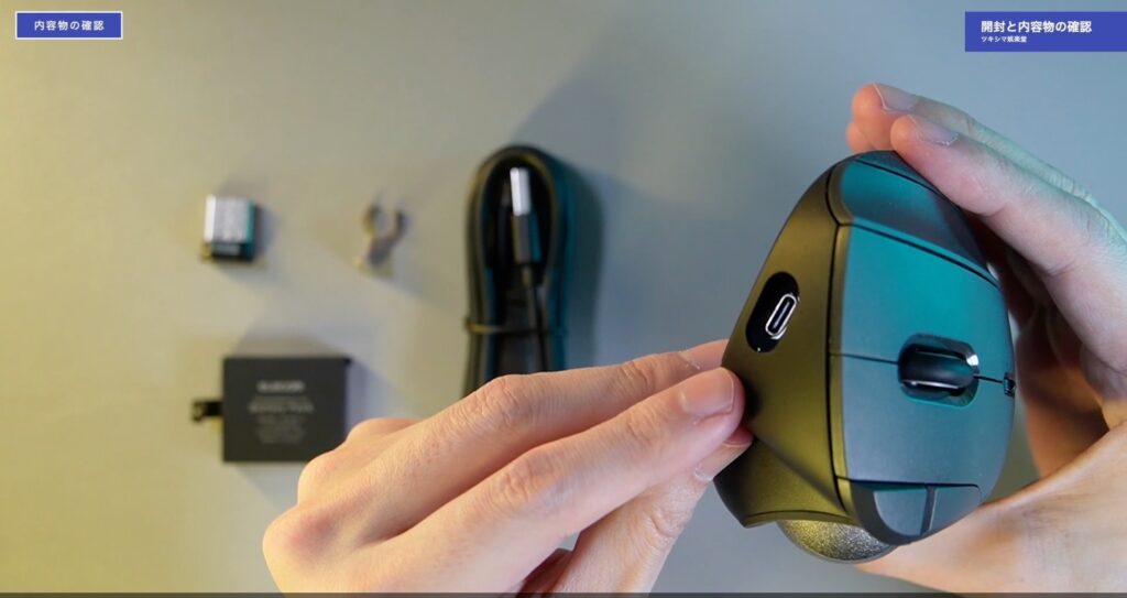 本体上部には、USB Type-C端子があります。バッテリーパックを充電したり、パソコンと有線接続する際に使用します。
