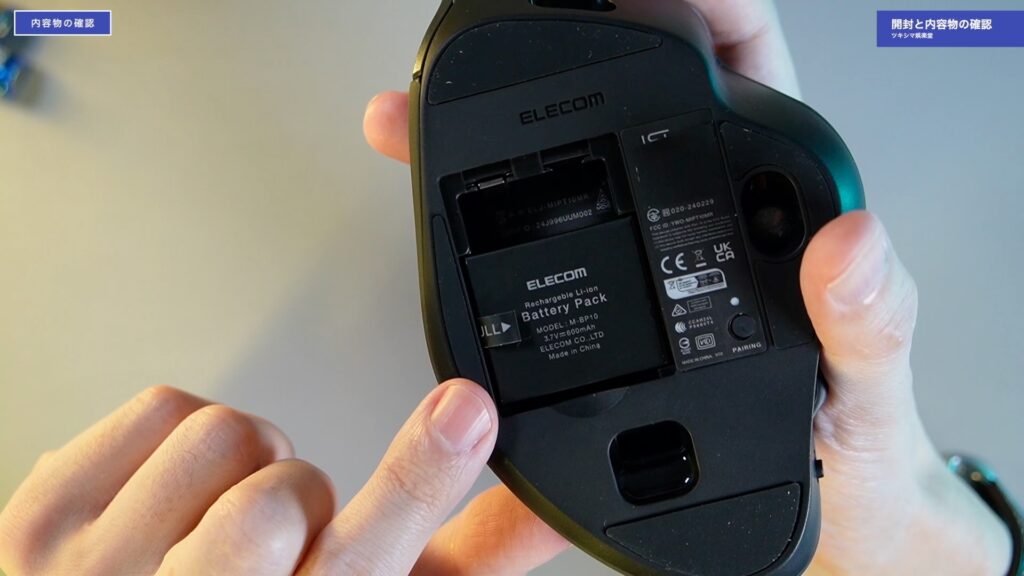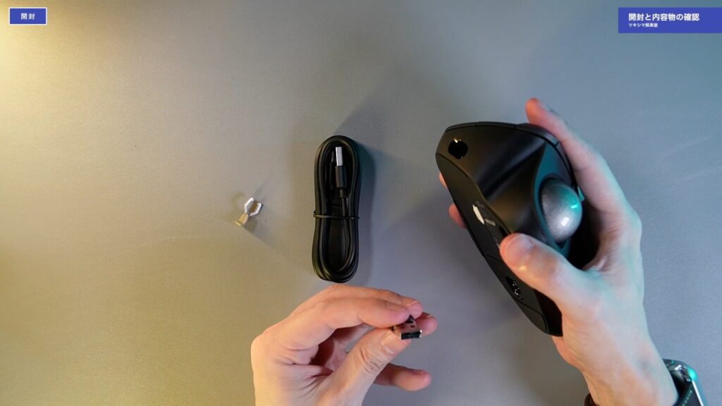 他にペアリング用のボタンと、無線接続用のUSBレシーバーを入れる場所があります。USBレシーバーを使用しないときは、本体裏に収納しておけます。
