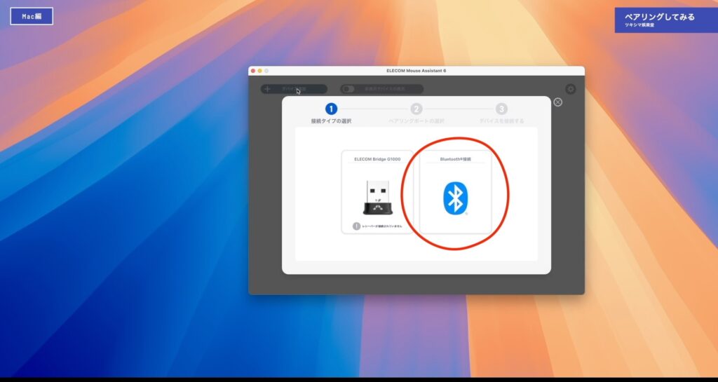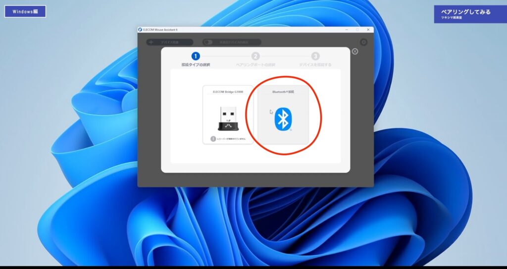 表示された「接続タイプの選択」でBluetooth接続を選択します。