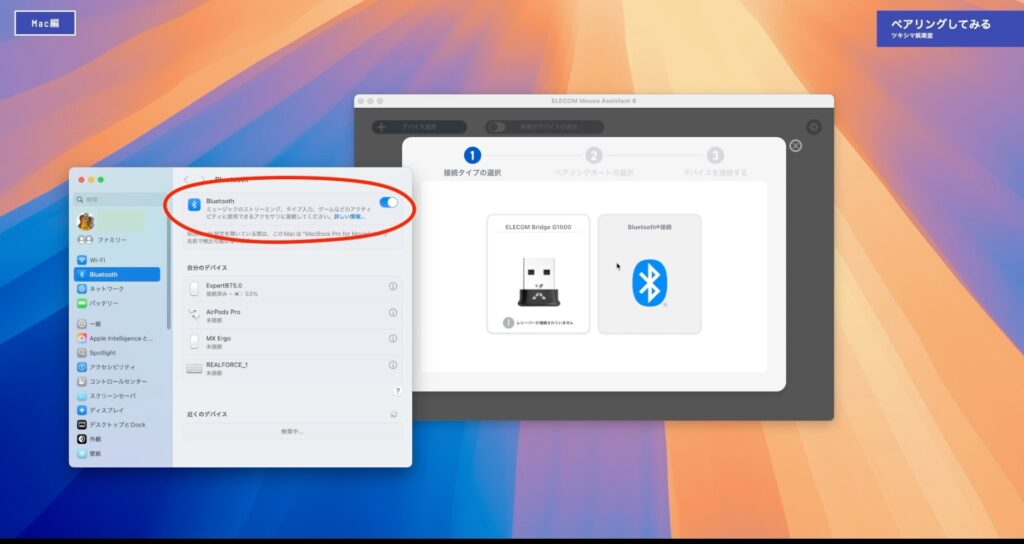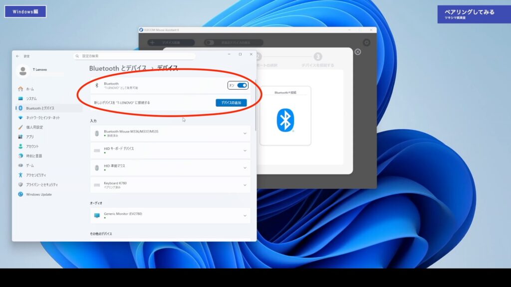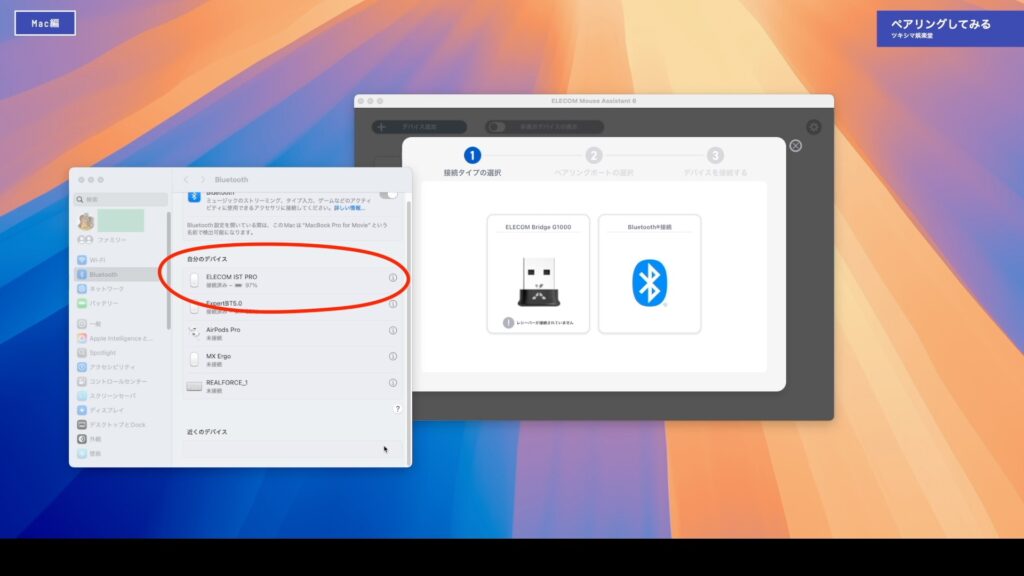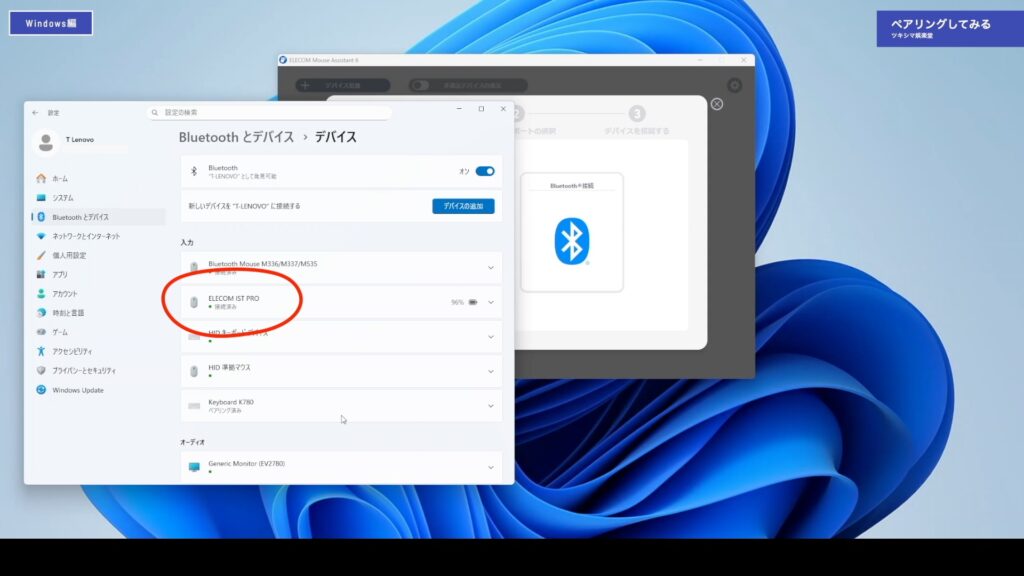 「ELECOM IST PRO」が「自分のデバイス」の欄に移動し、「接続済み」と表示されたらペアリングは完了です。