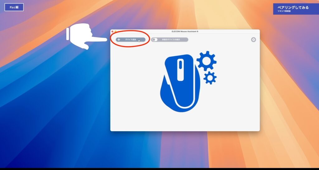 エレコム マウスアシスタント6の「デバイス追加」を選択します。