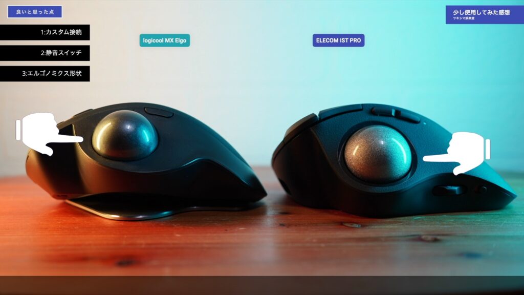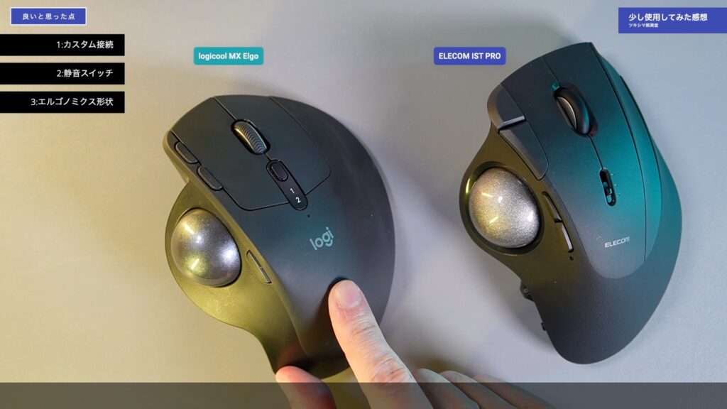 私がIST PROを使い始めてからまだ日が浅いですが、「logicool MX Ergo」と比べると、ボタンの数やBluetooth接続先の数、静音ボタンやエレコム マウスアシスタント6を使用したカスタマイズなど、IST PROの方が多機能で使いやすいと思いました。そしてIST PRO本体のサイズも私の手のひらに丁度良い感じで馴染んでいます。今後はIST PROを長く使用していきたいと考えています。