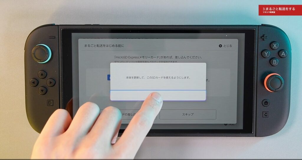 microSDカードを差し込むと、再び本体の更新が始まります。SDカードが使えるようになりましたら次へ進みます。