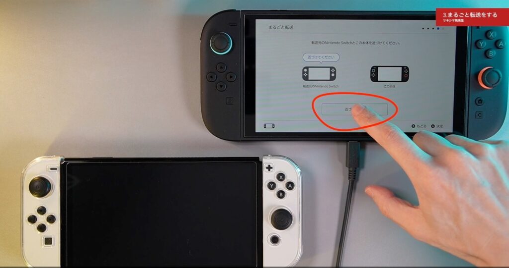 両方のスイッチを近くに置きましたので、「近づけました」をタップします。