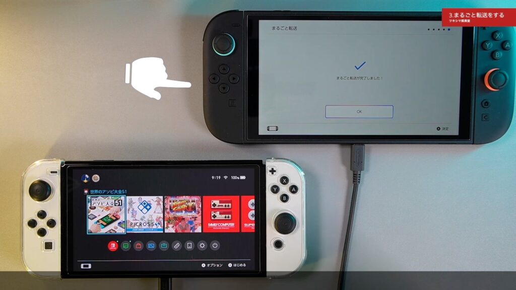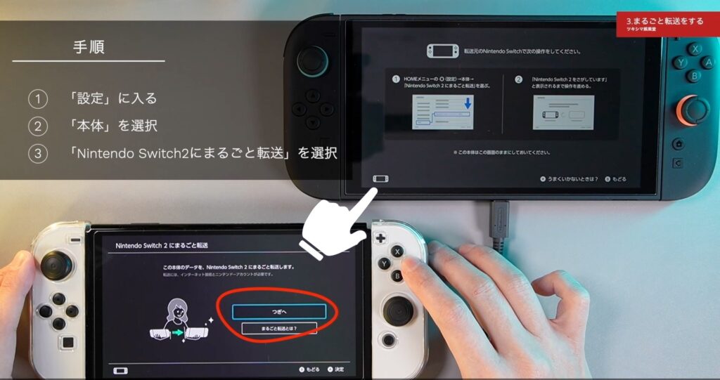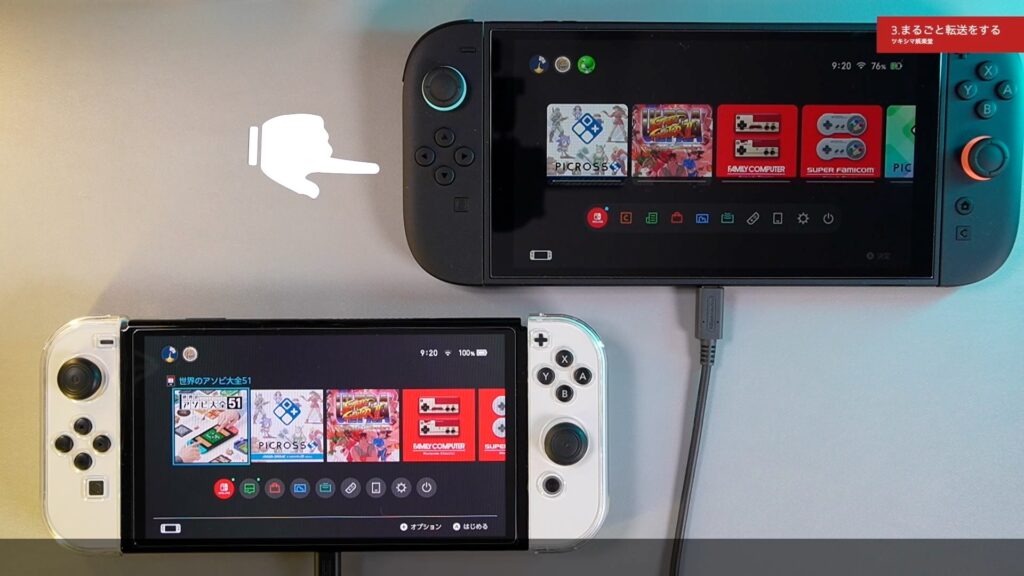 今回は、ニンテンドースイッチ有機ELモデルから新しいSwitch2へローカル通信でまるごと転送する方法をみていきたいと思います。