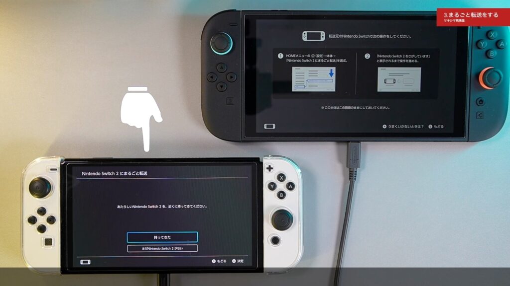 いま新しいスイッチ2は近くにありますので「持ってきた」を選択します。