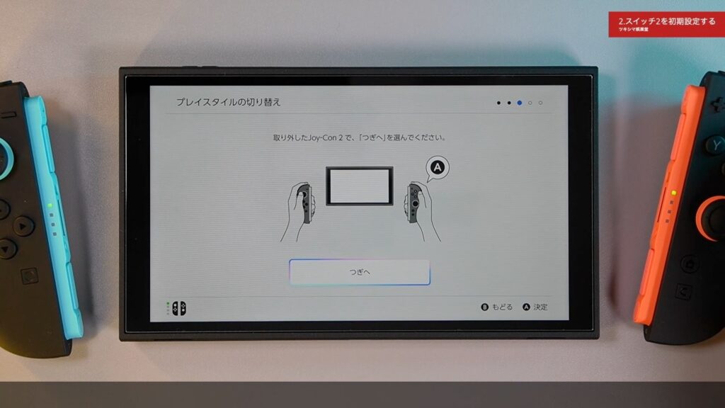取り外したJoy-Con2で「つぎへ」を選びます。