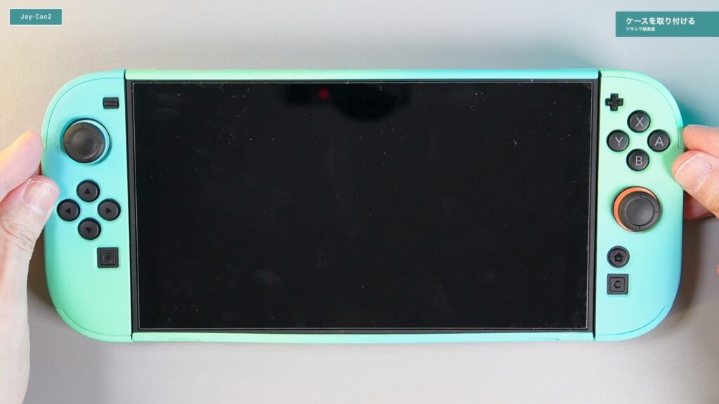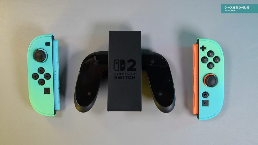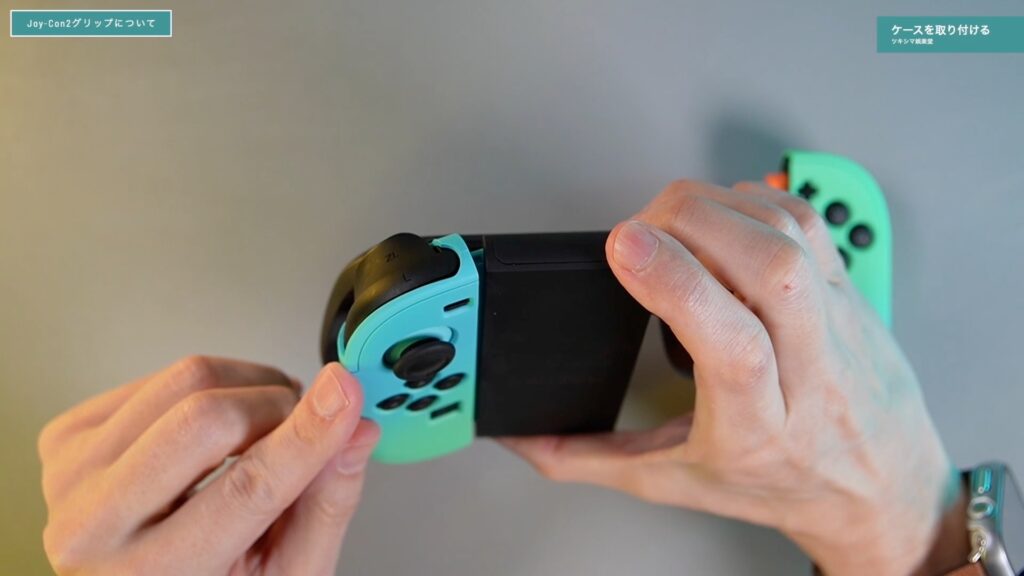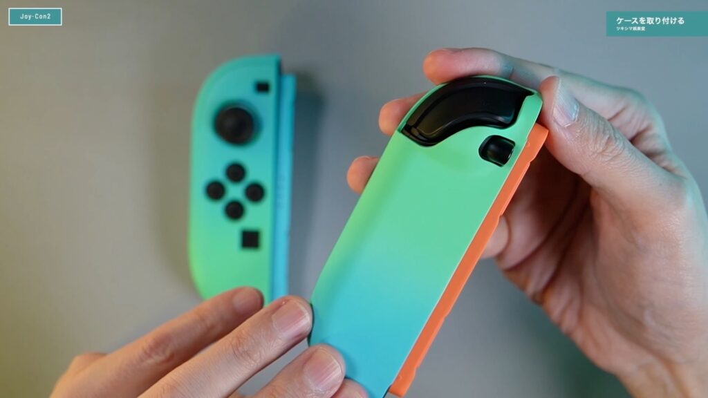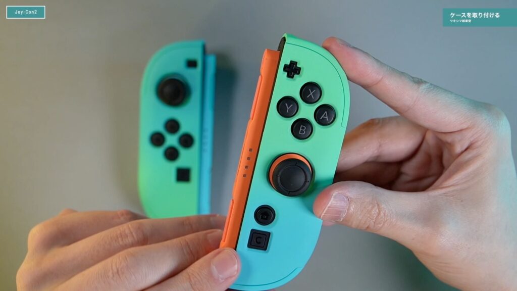 ケースの下部分をJoy-Con2にセットして、ケースの上部をセットするような感じです。