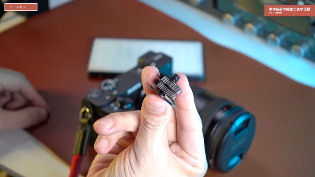 ミニ三脚を取り付けたり、コールドシューを使用してカメラの上部にセットしたり、色々な使い方が出来ます。